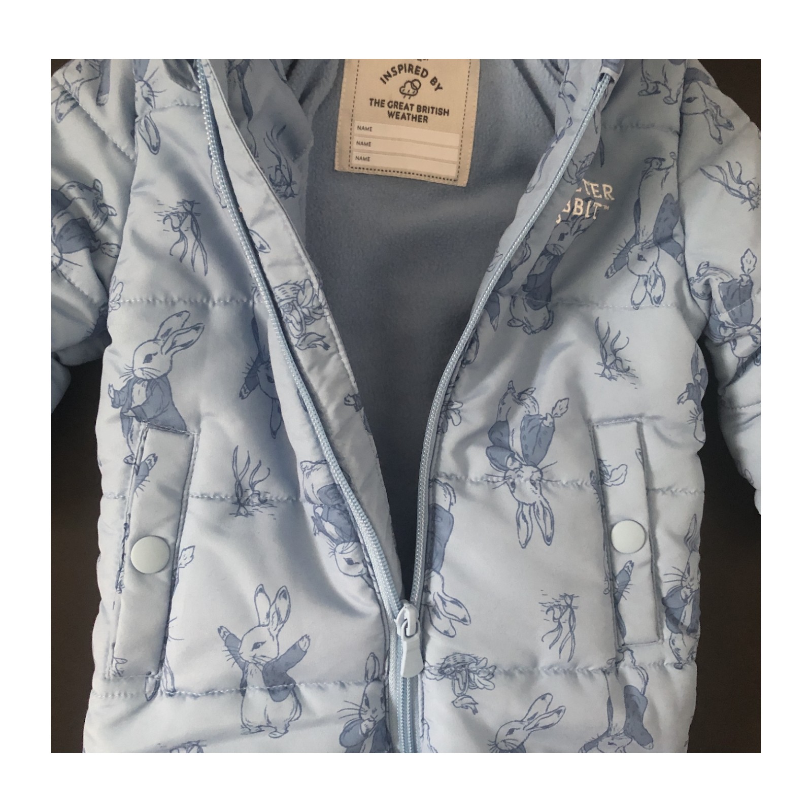 The blue colour and cute Peter Rabbit design add a touch of charm to this practical and stylish pramsuit from the well-