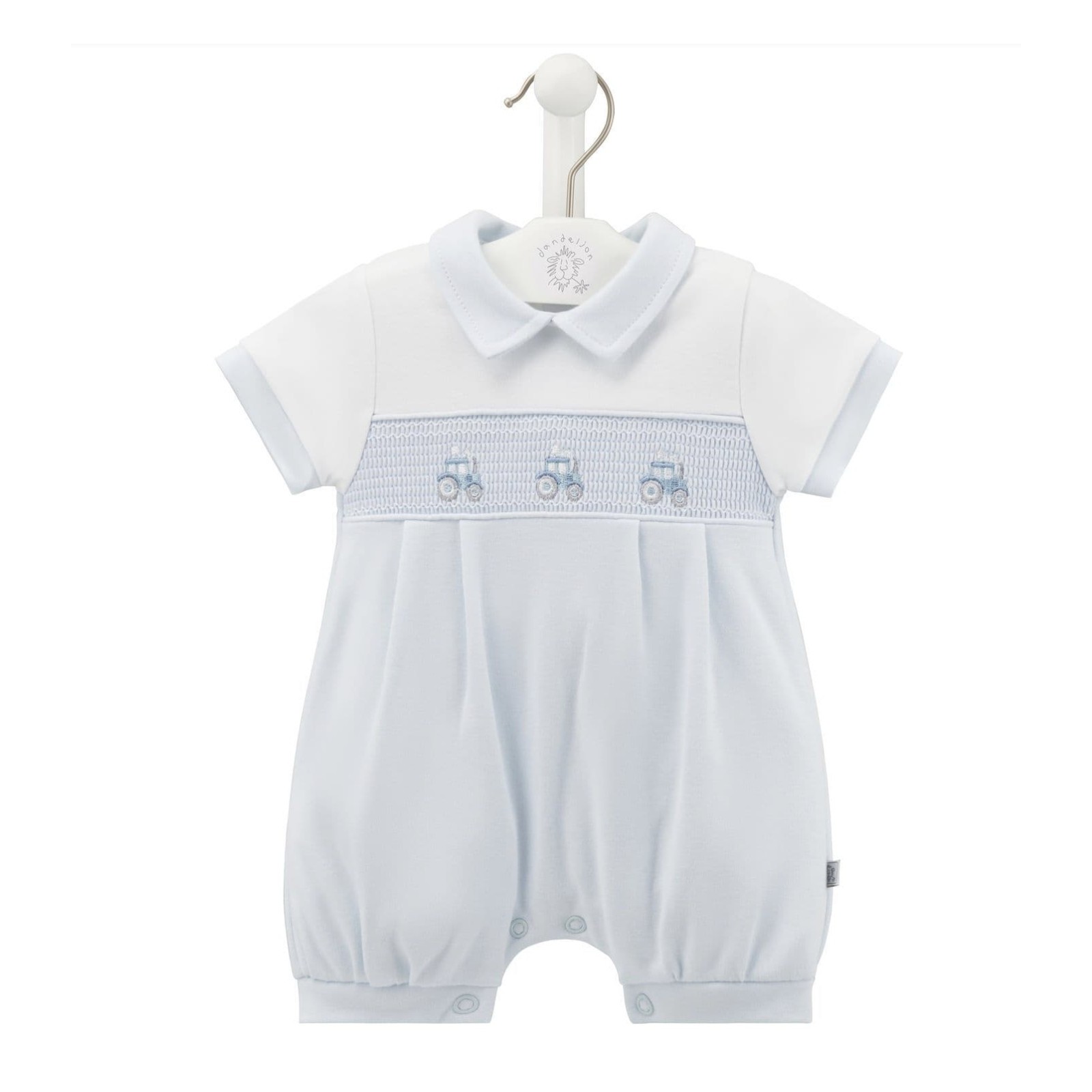 Charming Details: The romper features delightful smocking with an embroidered tractor design, adding a playful touch that’s perfect for little adventurers.