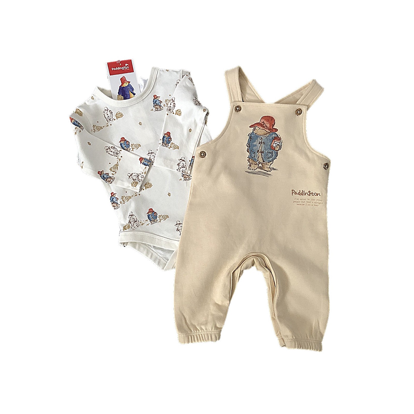 This adorable two-piece outfit set for your little one is perfect for any occasion, especially activewear. The set includes a beige-coloured dungaree with a pattern body top , both made from 100% cotton material. The outfit is designed for unisex babies and toddlers aged 3-6 months. The Paddington Bear-themed outfit is suitable for all seasons and is a great addition to your baby's wardrobe. The set is perfect for any parent looking for a comfortable and stylish outfit for their little one. Get your hands on this amazing set today!