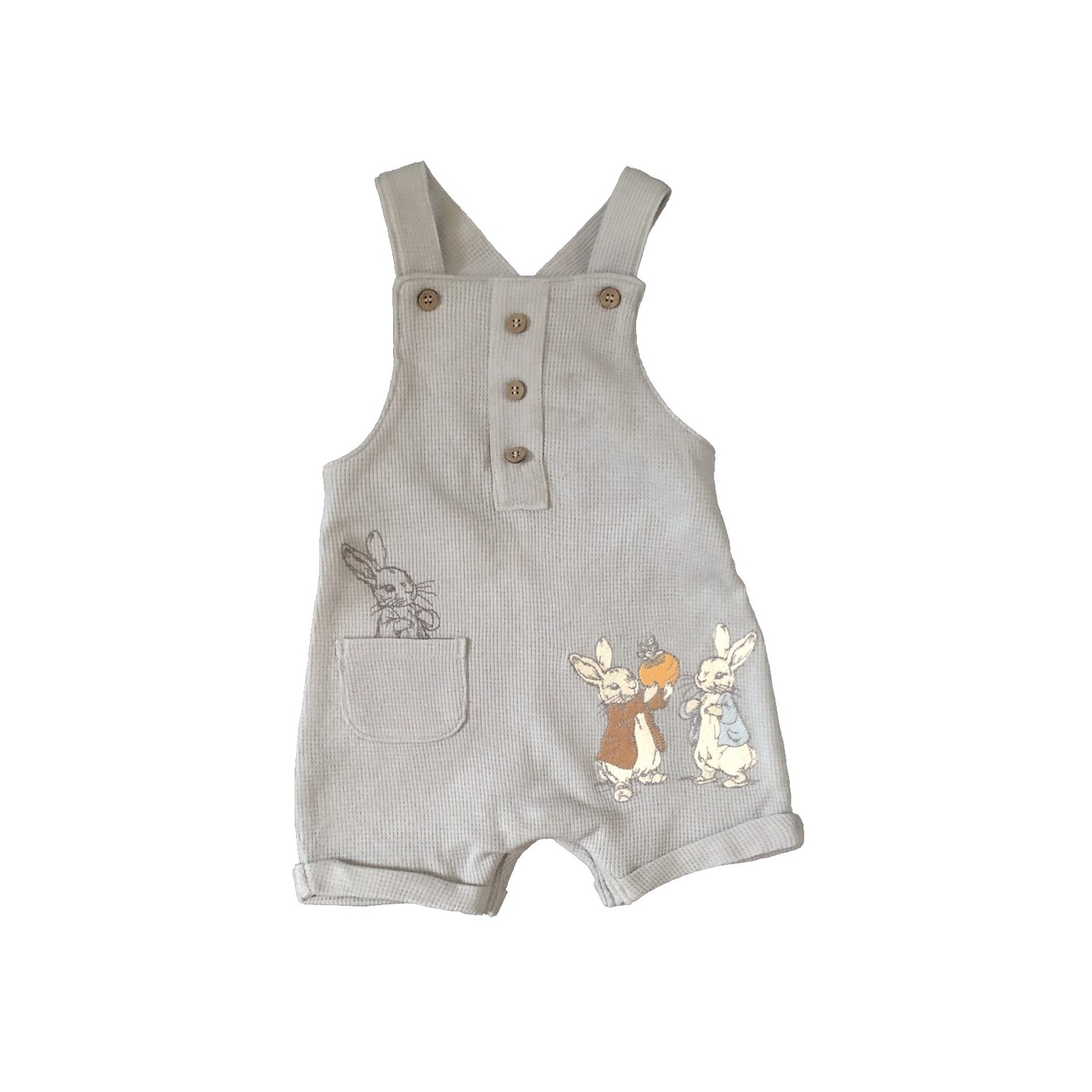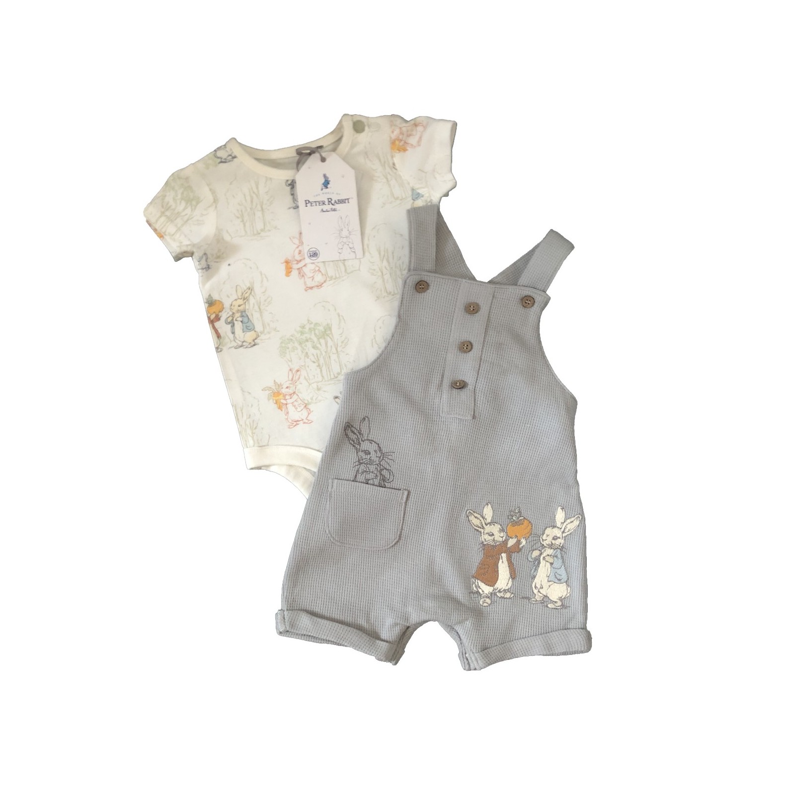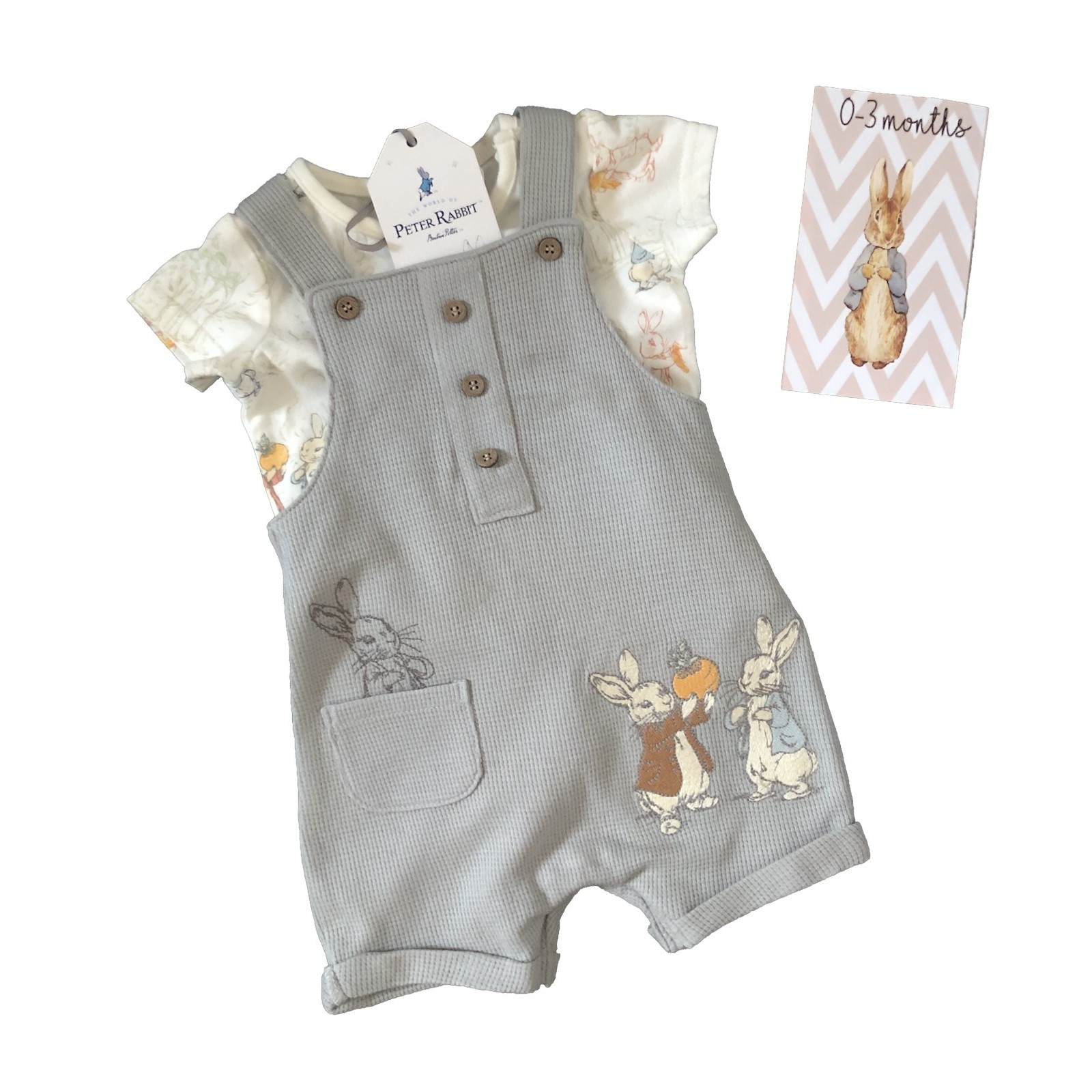 Dress your little one in the charming allure of Peter Rabbit with this cosy grey dungarees set, perfect for baby boys aged 0-3 months.