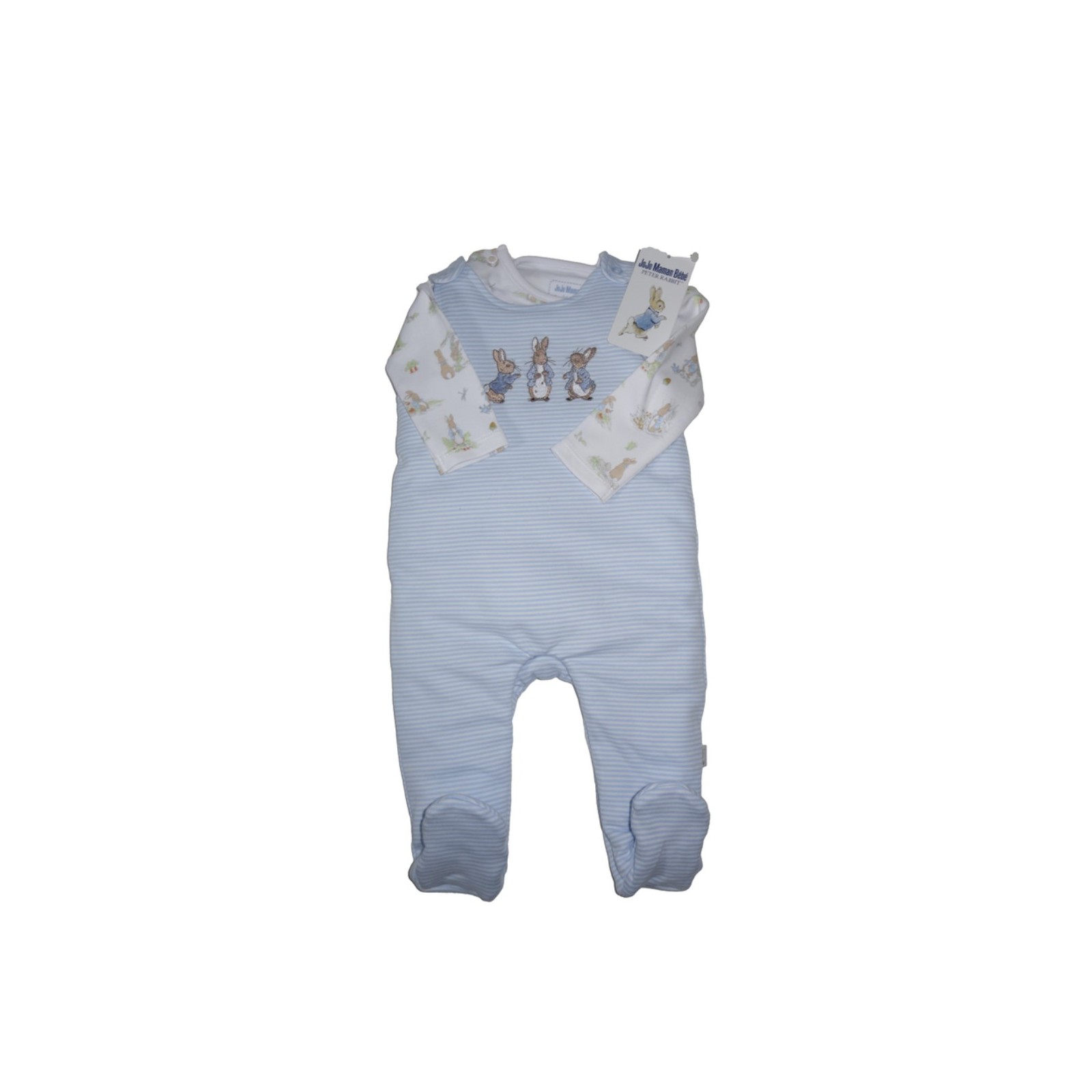 Dress up your little man in this adorable two-piece outfit from Peter Rabbit. The set includes a long-sleeved top with a cute animal print and popper closure, perfect for casual occasions. The matching dungarees are also included and are both stylish and practical, making them a great addition to your baby's wardrobe. Made from 100% cotton, this outfit is soft and comfortable for your baby to wear. The blue colour adds a touch of charm, and the set is suitable for autumn, winter, and spring seasons. This outfit is perfect for any parent looking for a cute and practical outfit for their little one.