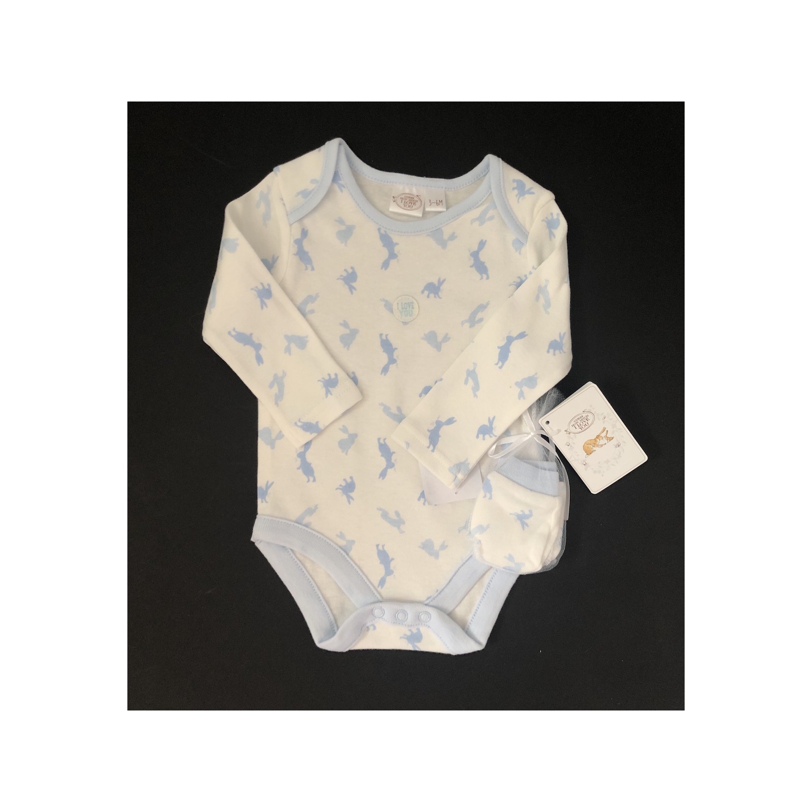 The grey colour and Hare character family accents are a great addition to your baby's wardrobe.