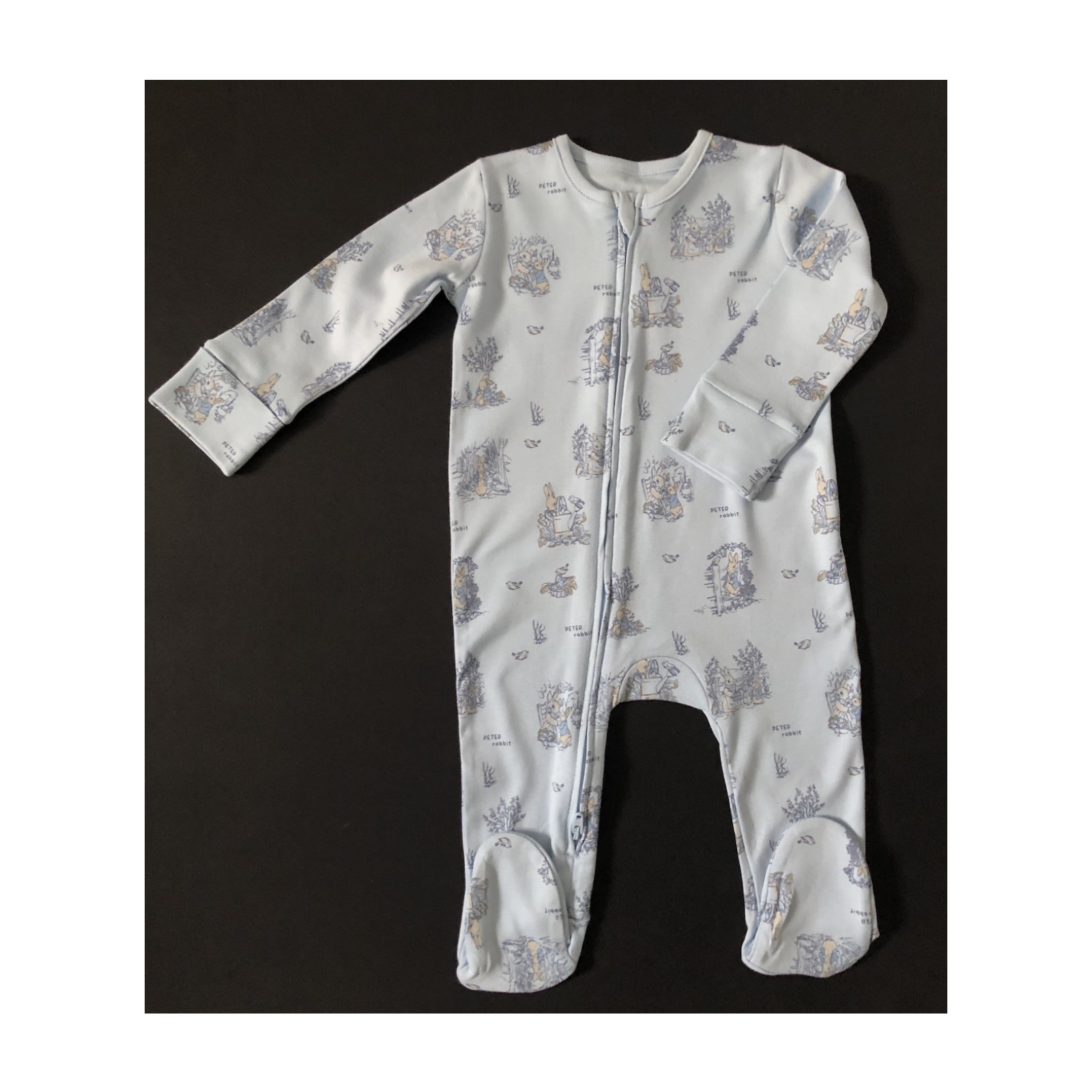 This listing features two Peter Rabbit sleepsuits for baby boys.