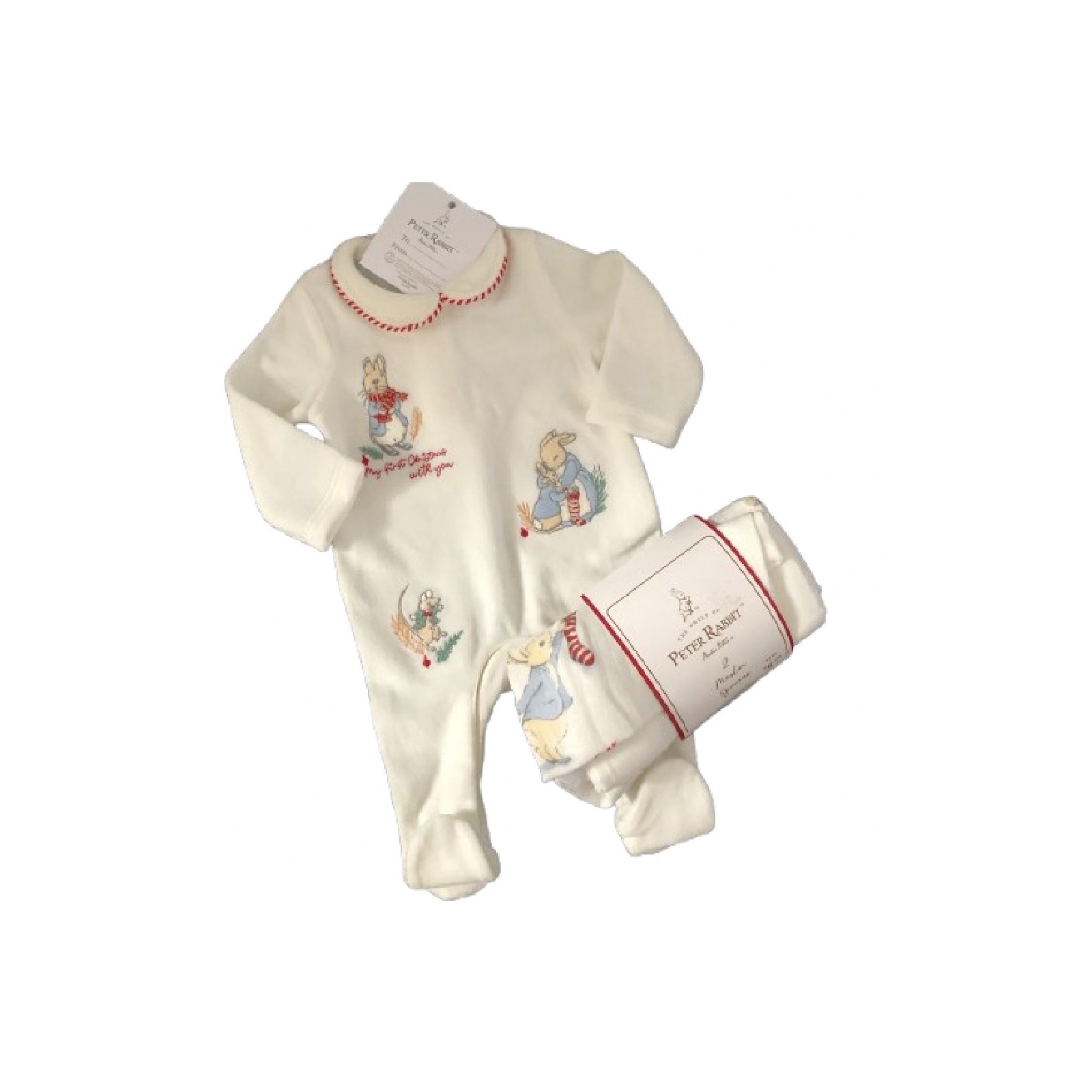 Get your little one ready for the festive season with this adorable Peter Rabbit sleepsuit and two muslin wraps.