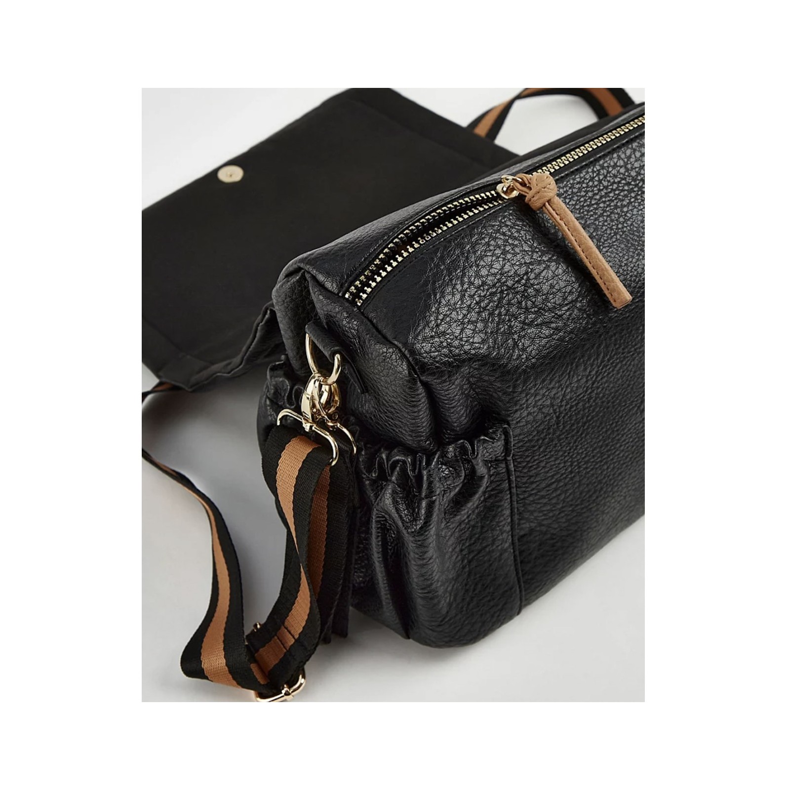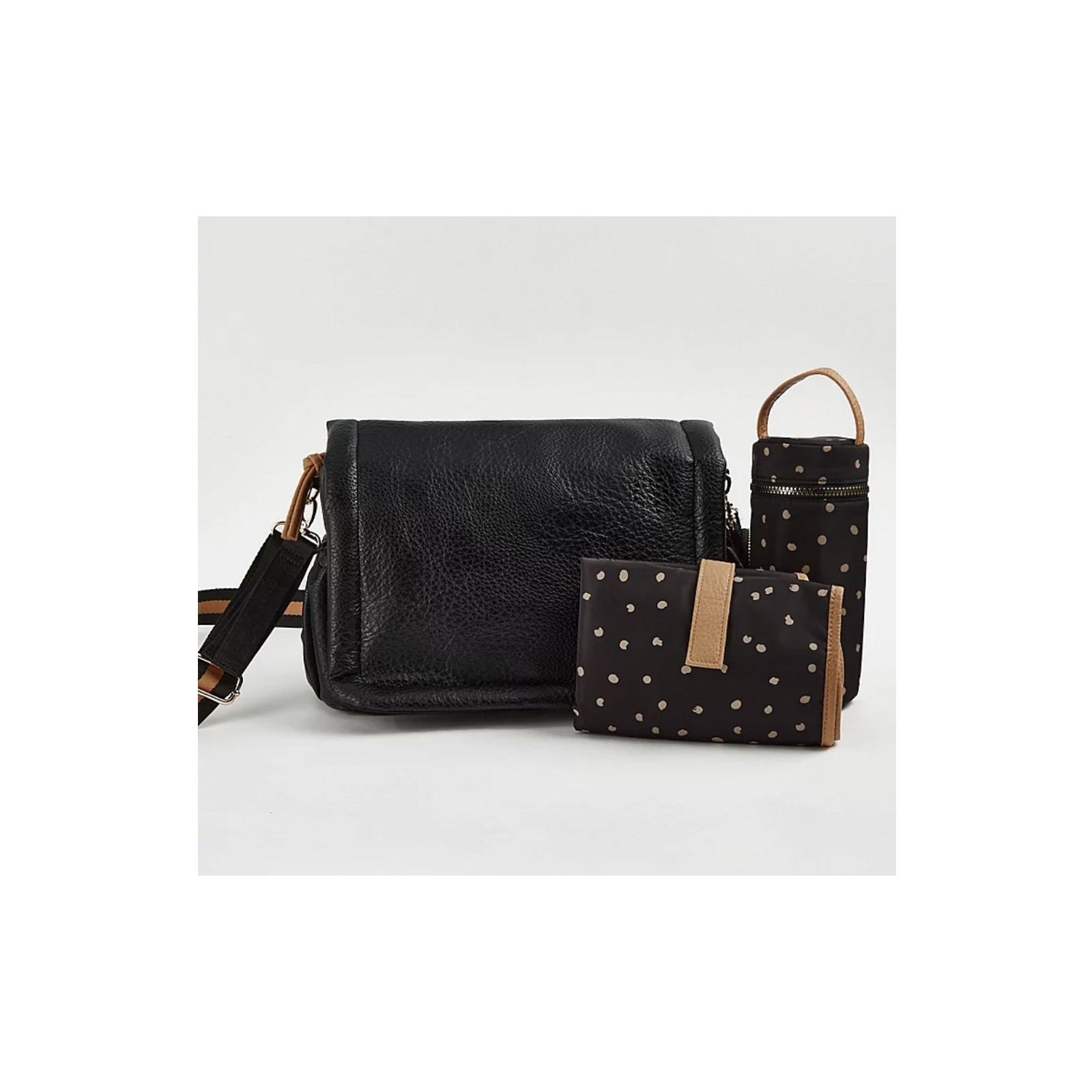 • 3 piece set • Long adjustable shoulder straps • Textured finish • Press stud flap fastening • Zip fastening • Elasticated side pockets • Small detachable circle purse • Matching changing mat • Matching bottle case