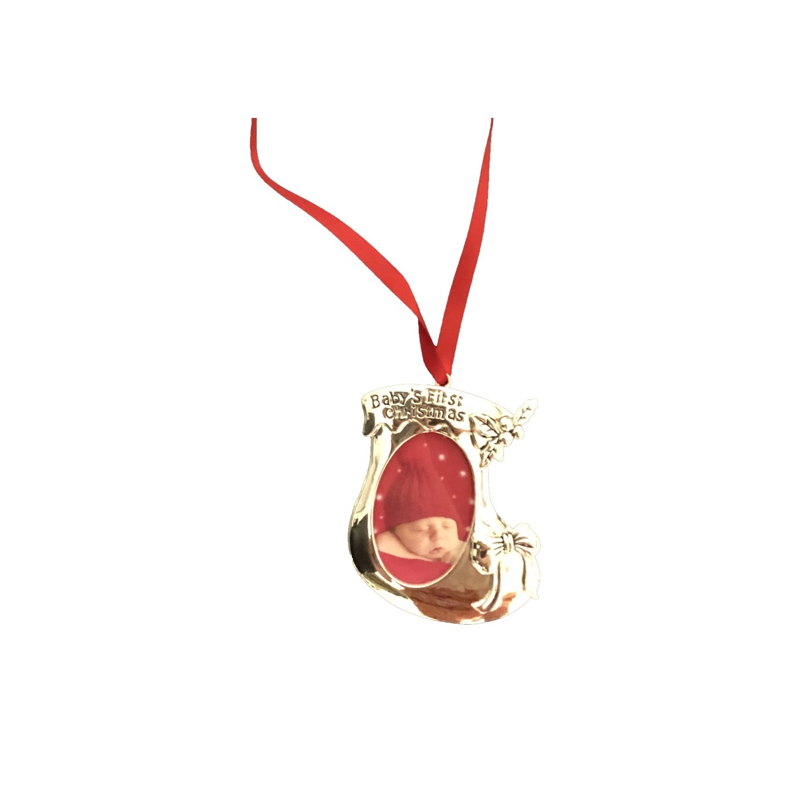 Baby' First Christmas Silver Plated Stocking Decoration Photo Frame