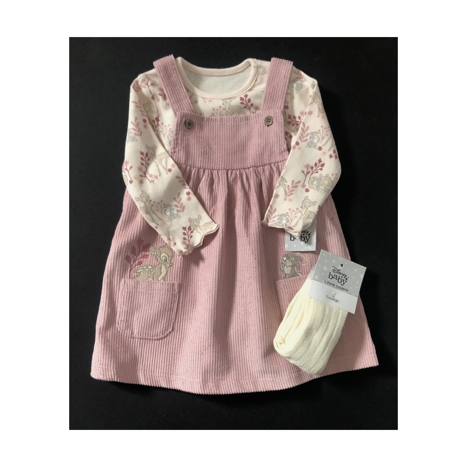 This Baby Girls Bambi Dress Top Tights Set is a charming outfit perfect for autumn, winter, and spring.