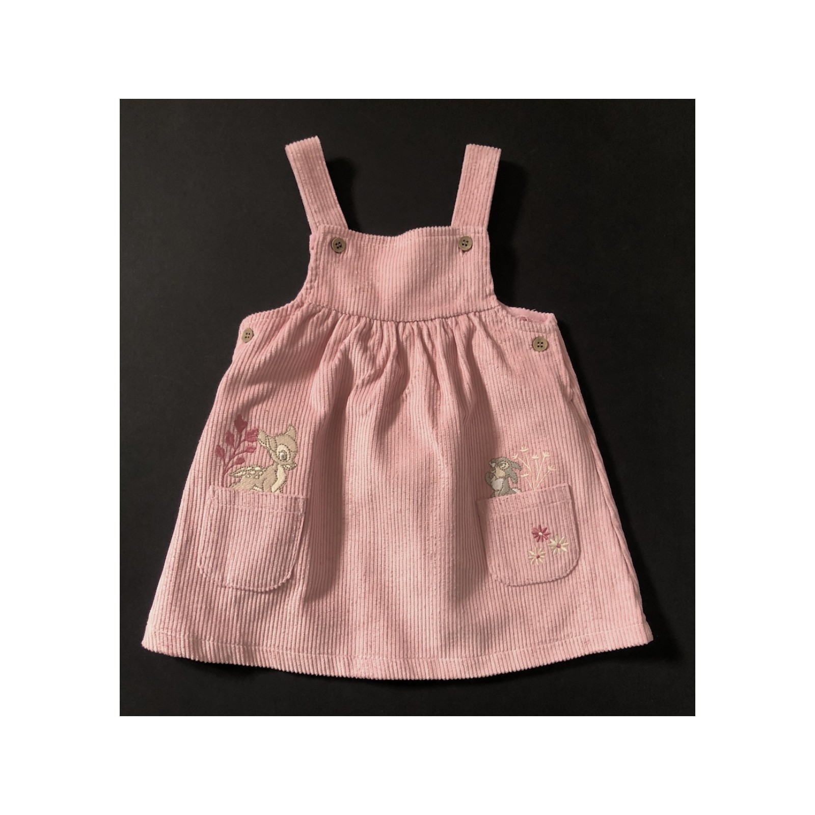 Made from 100% cotton, the knee-length A-line dress features long sleeves, a button closure, and a lovely pink colour with Bambi character detail.