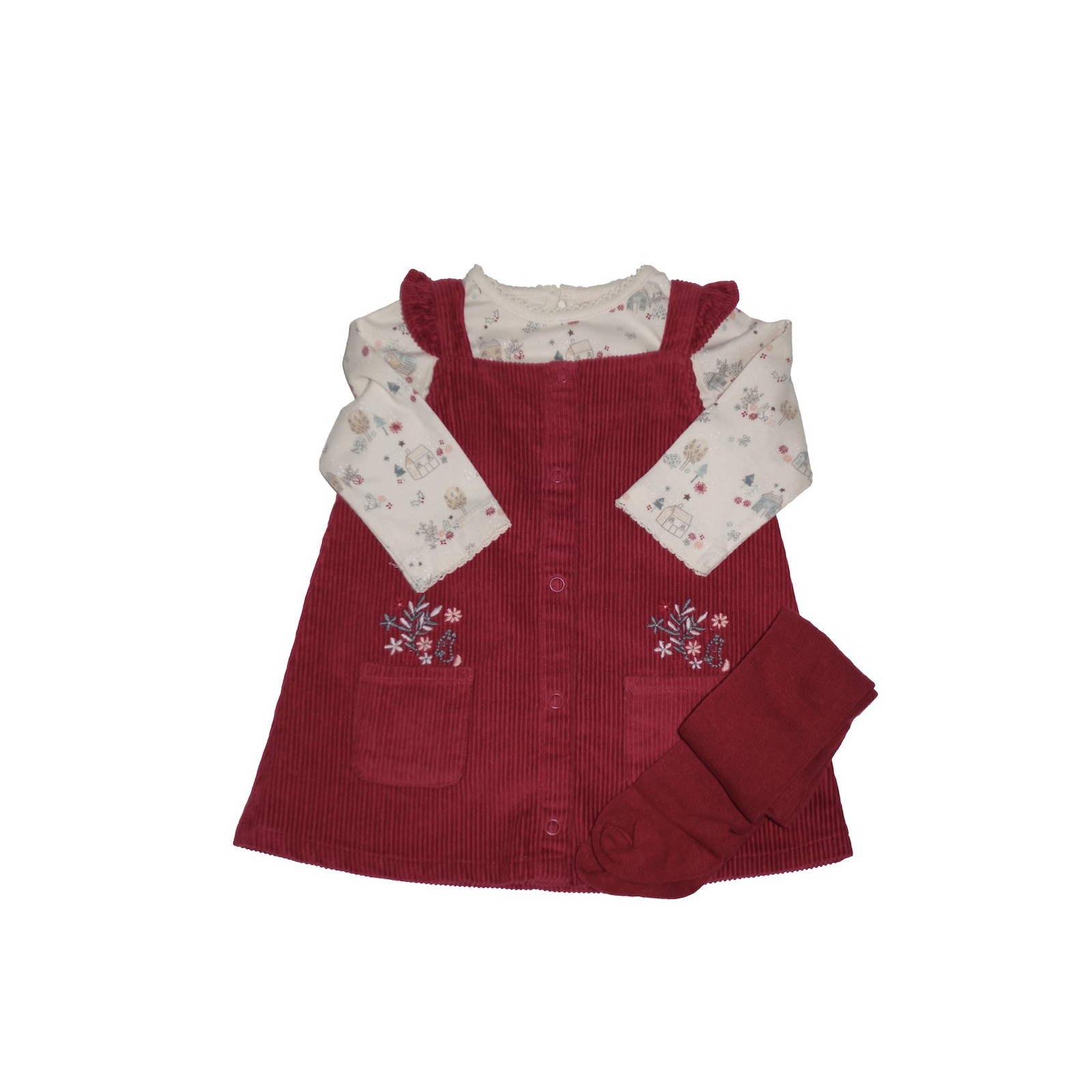 Dress up your little princess in this adorable red corduroy dress with long sleeves and a crew neck. The knee-length A-line dress is perfect for casual occasions and is made of 100% cotton fabric, ensuring comfort and durability. The dress comes with a matching pair of tights and is suitable for girls aged 3-6 months. The vintage-style dress is perfect for the autumn, winter and spring seasons and is a great addition to any baby's wardrobe. The dress is machine-made and is not handmade. You can't personalise the dress, but it's perfect for any parent looking for a cute and stylish outfit for their baby girl.