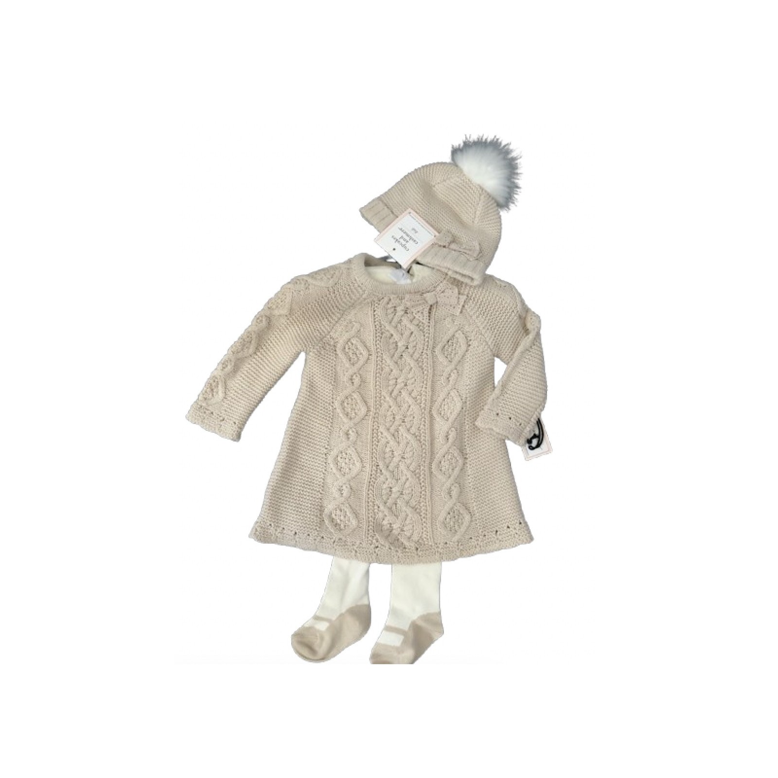 This Beige Knitted Dress with Matching Hat & Tights is perfect for parents looking for a stylish, comfortable, and practical outfit for their baby girl. Whether it’s for a special occasion or a casual day out, this set is a must-have for any little princess's wardrobe!