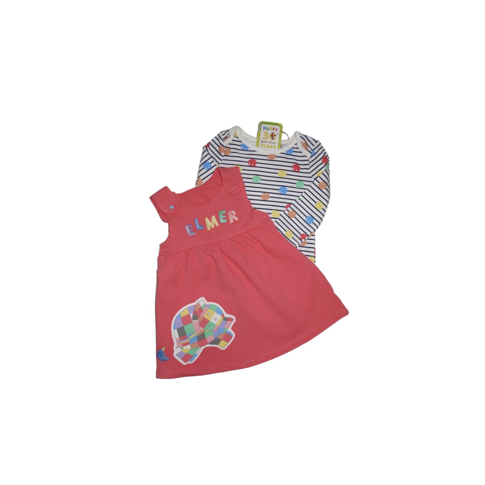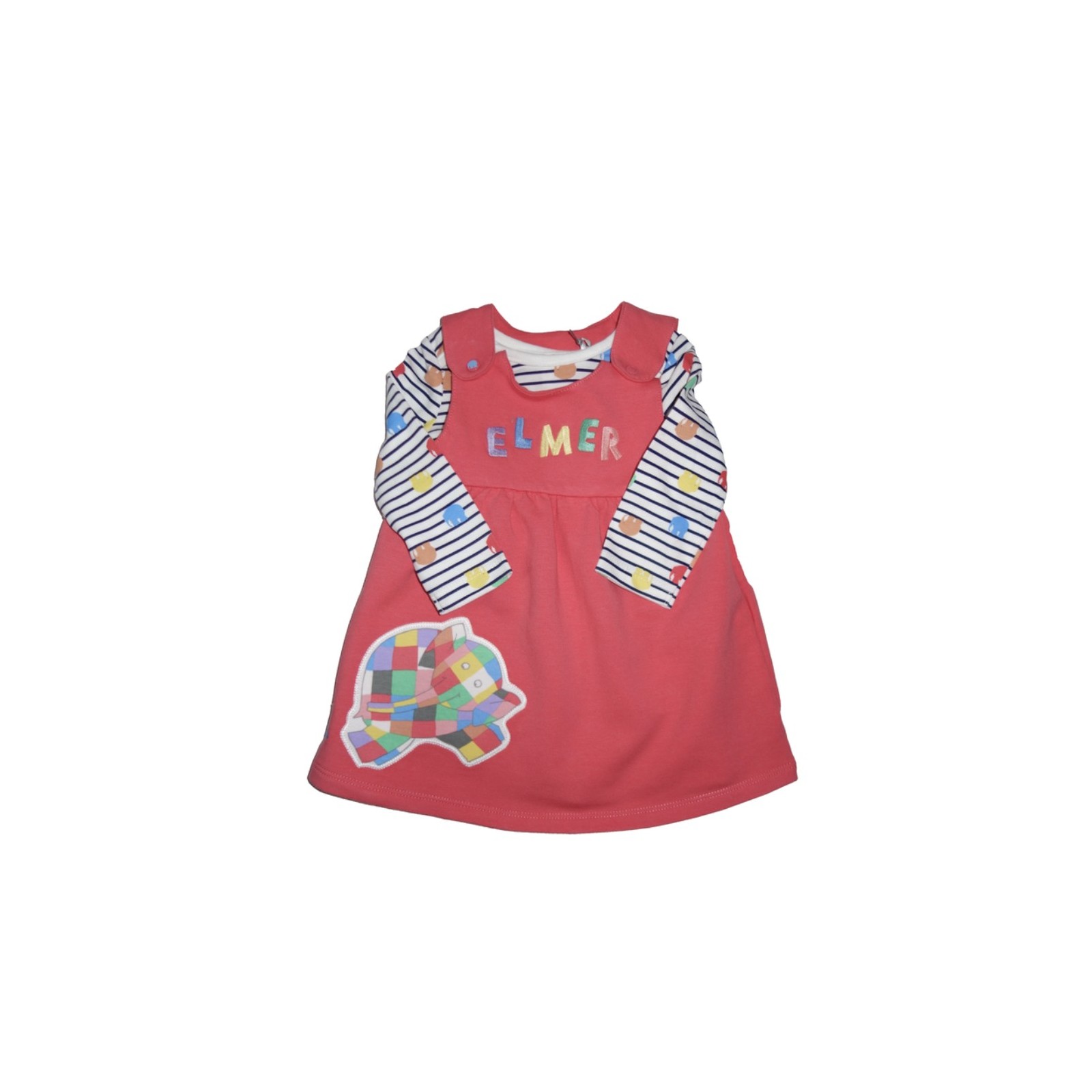 Dress up your little girl in this adorable Elmer pinafore dress in a vibrant shade of orange. The dress features a crew neckline, long sleeves with snap closures, and falls just above the knee. Made from 100% cotton, it is soft, comfortable, and perfect for casual occasions during autumn, winter, or spring. The A-line style and knee-length cut make it a versatile addition to any baby girl's wardrobe. The dress is suitable for girls aged 3-6 months and is easy to wear, making it a great choice for parents who want a hassle-free dressing experience. Get your hands on this Elmer pinafore dress today and give your little girl a stylish and comfortable outfit option.