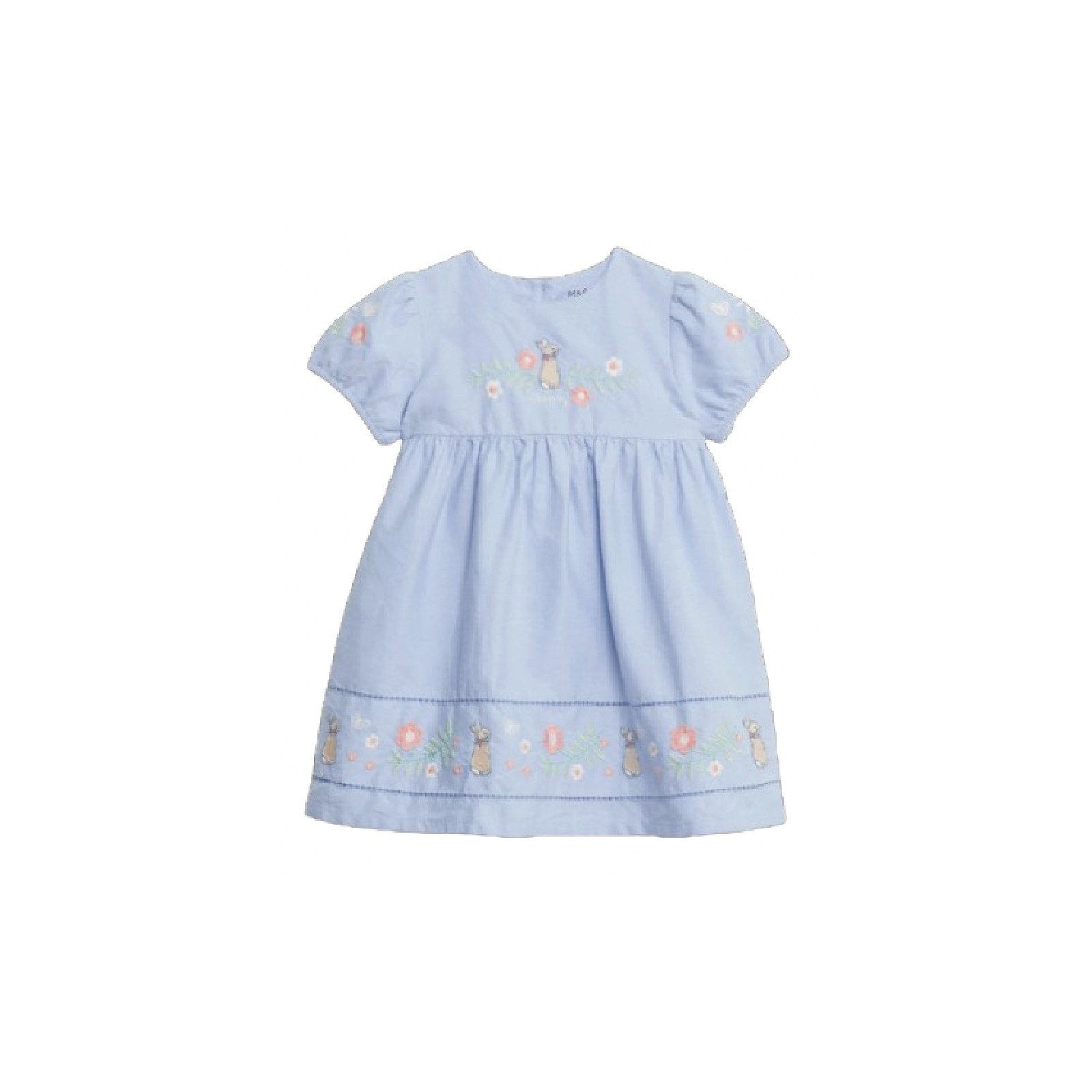 Peter Rabbit Theme: The dress showcases a charming Peter Rabbit design, adding a playful and timeless touch to the outfit.