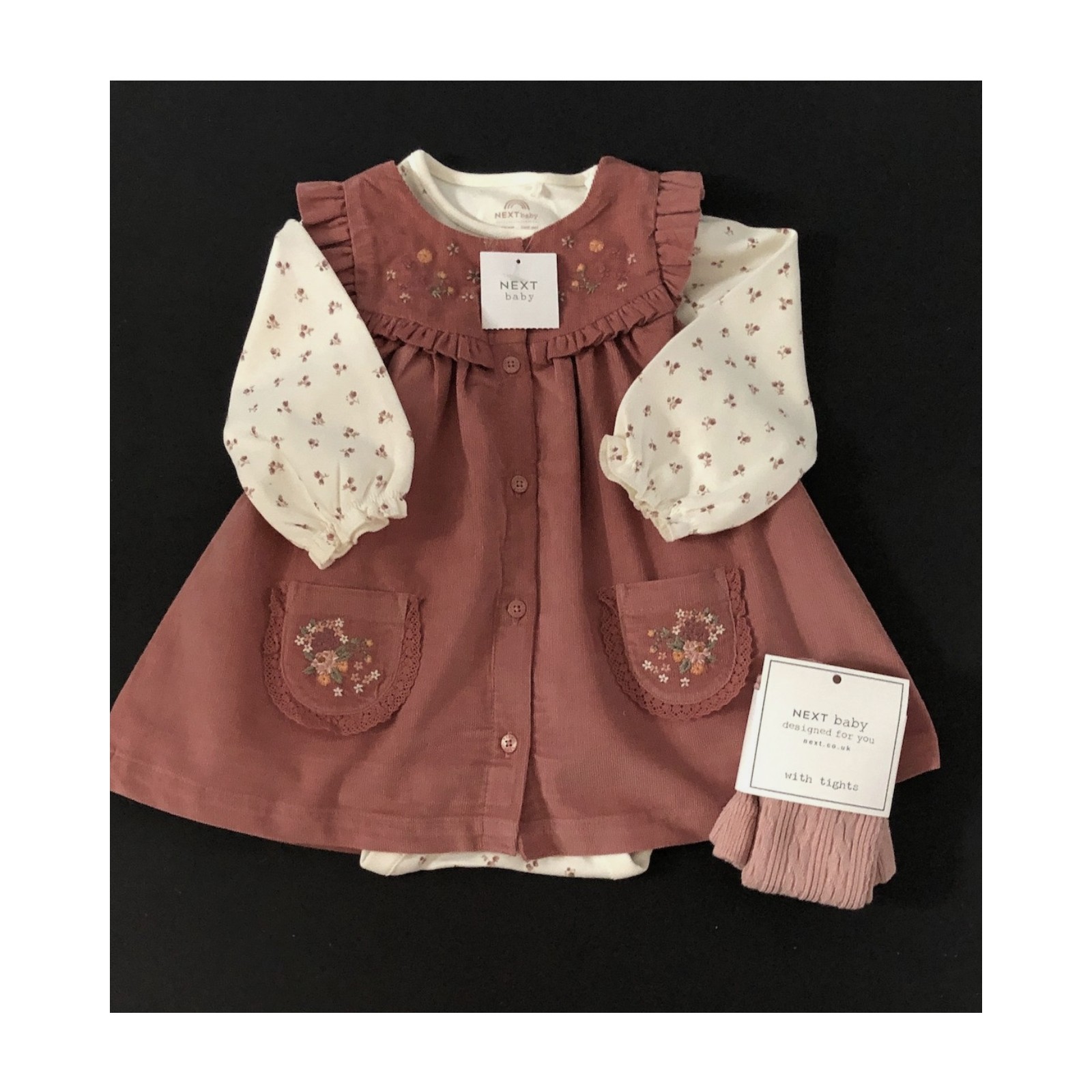 The Baby Girls Next Pinafore Dress Top and Tights Set is perfect for little ones .