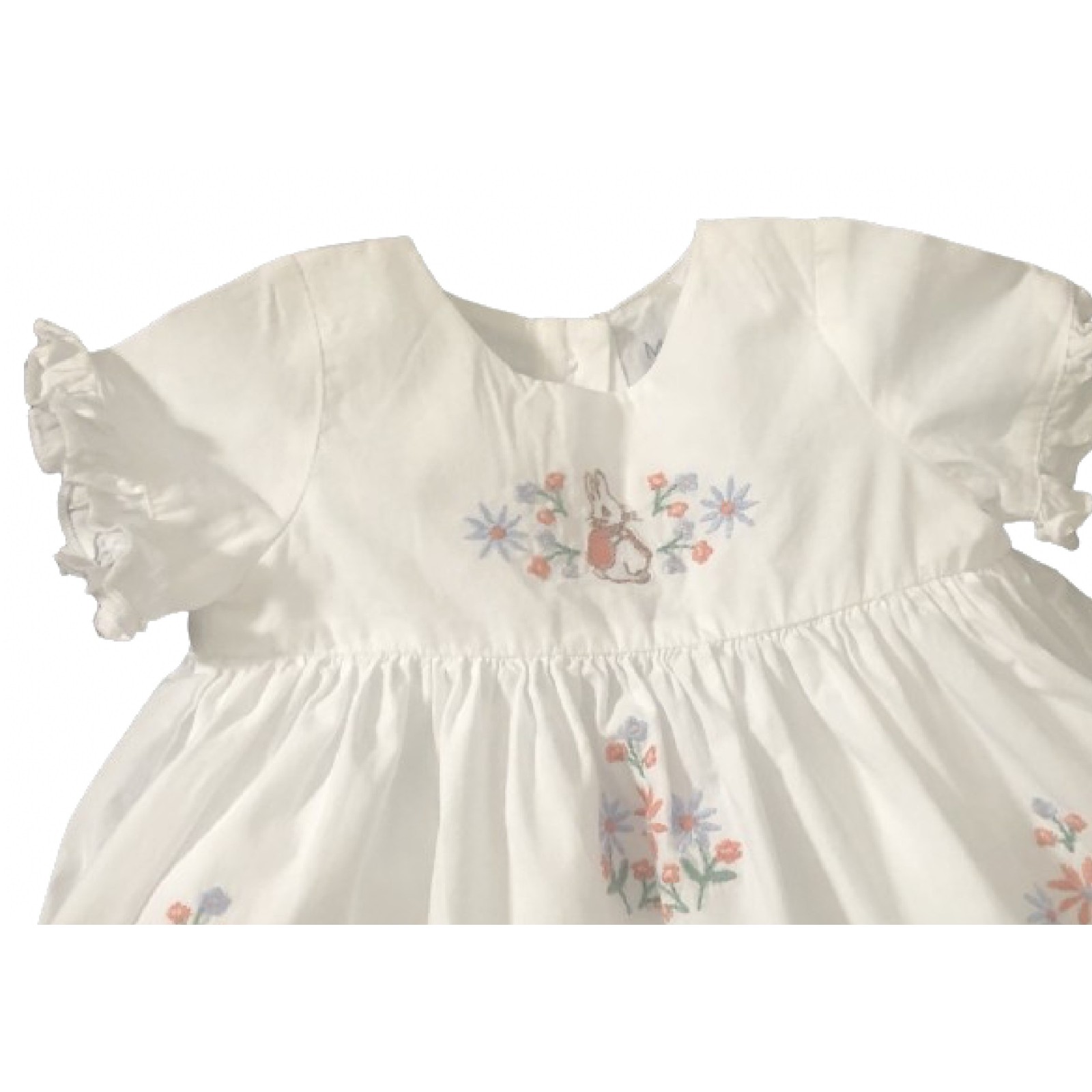 Dress your little girl in this adorable M&S Collection white Peter Rabbit dress complete with a matching knicker hat set!