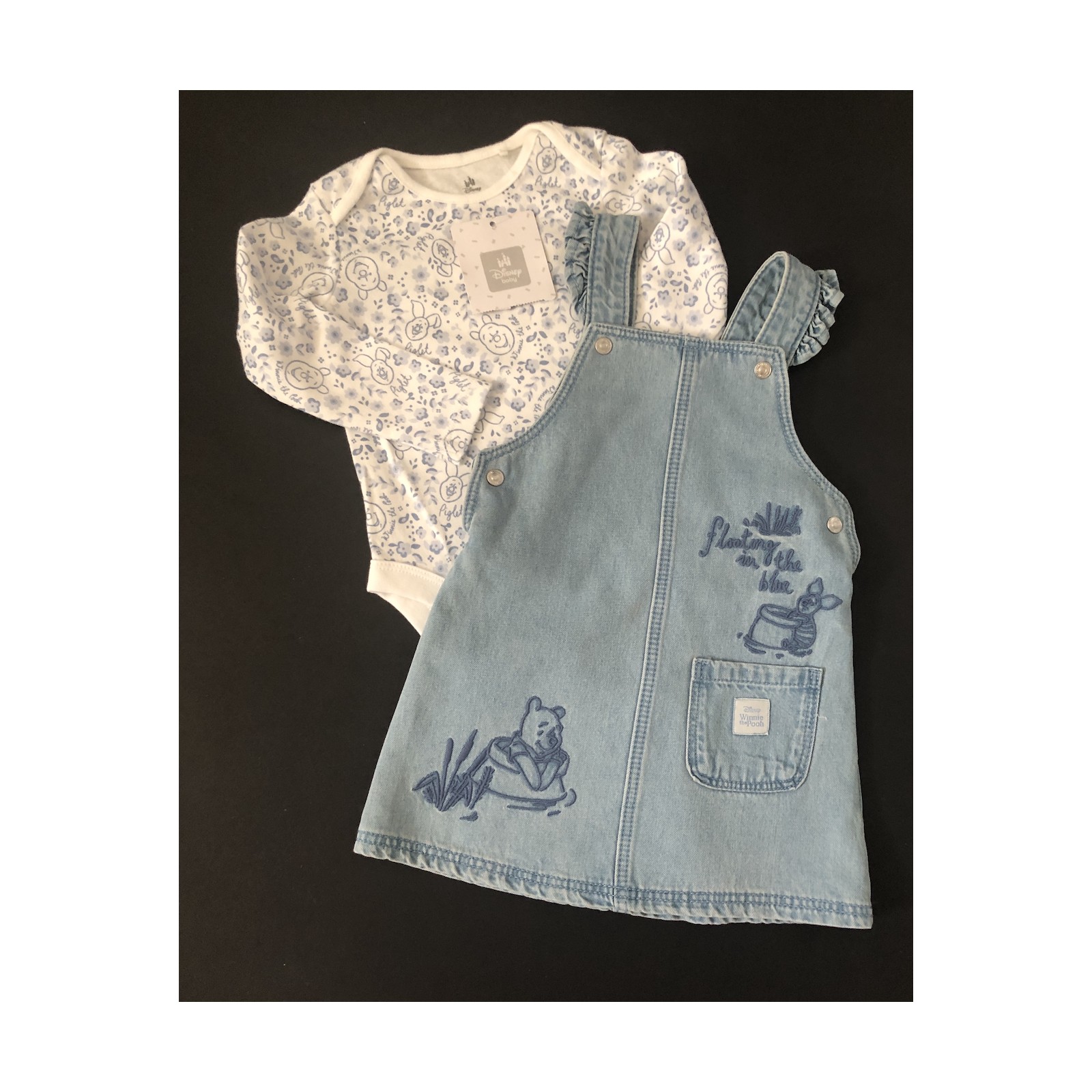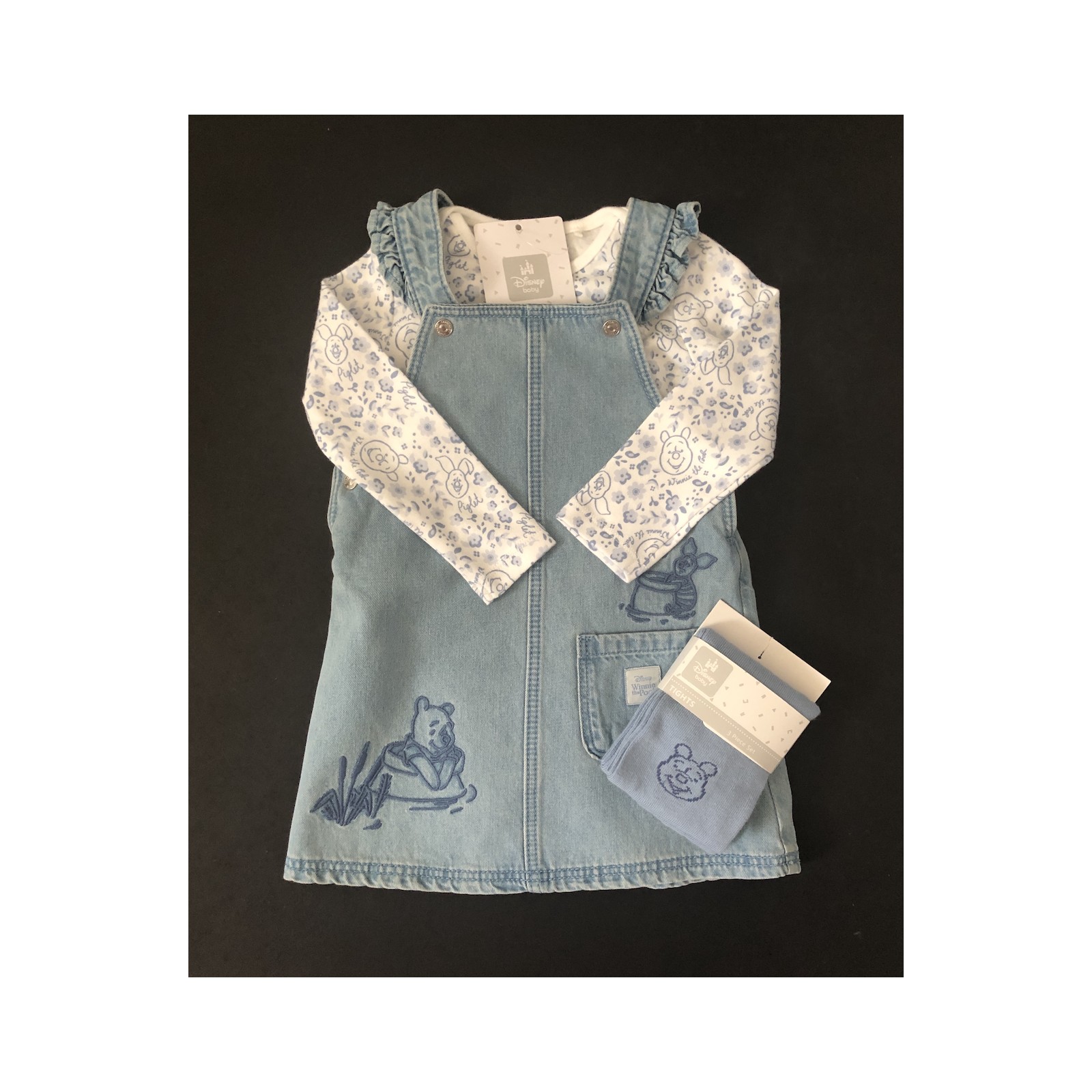 This Baby Girls Winnie The Pooh Dress Top and Tights Set is a delightful outfit for young girls. The dress features a classic long sleeve design with a round neck and button closure, made from 100% cotton material in a lovely blue colour. The A-line style and knee-length dress are perfect for activewear, making it a comfortable and stylish choice for your little one.