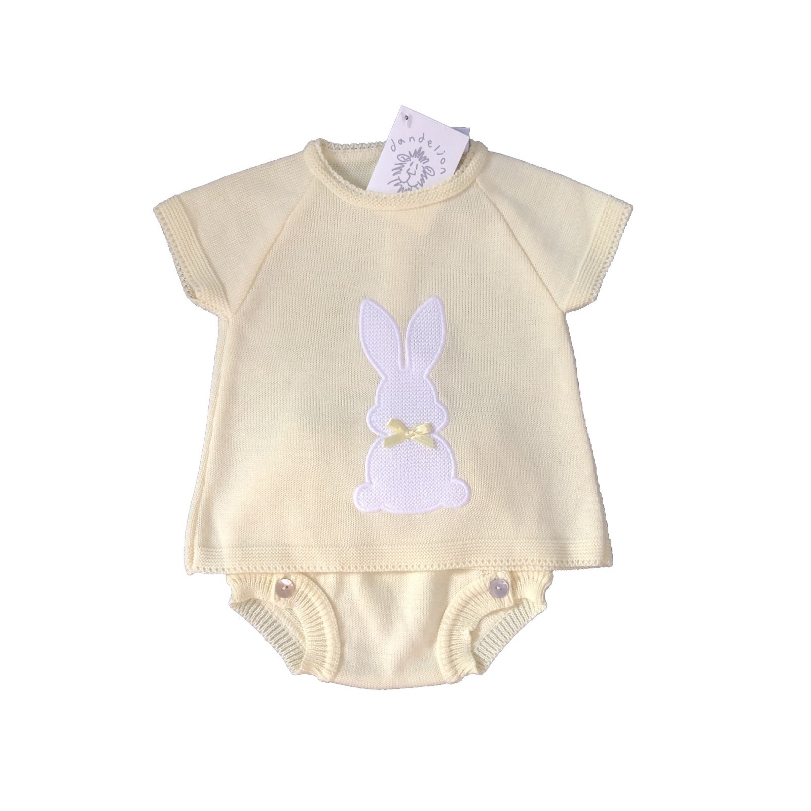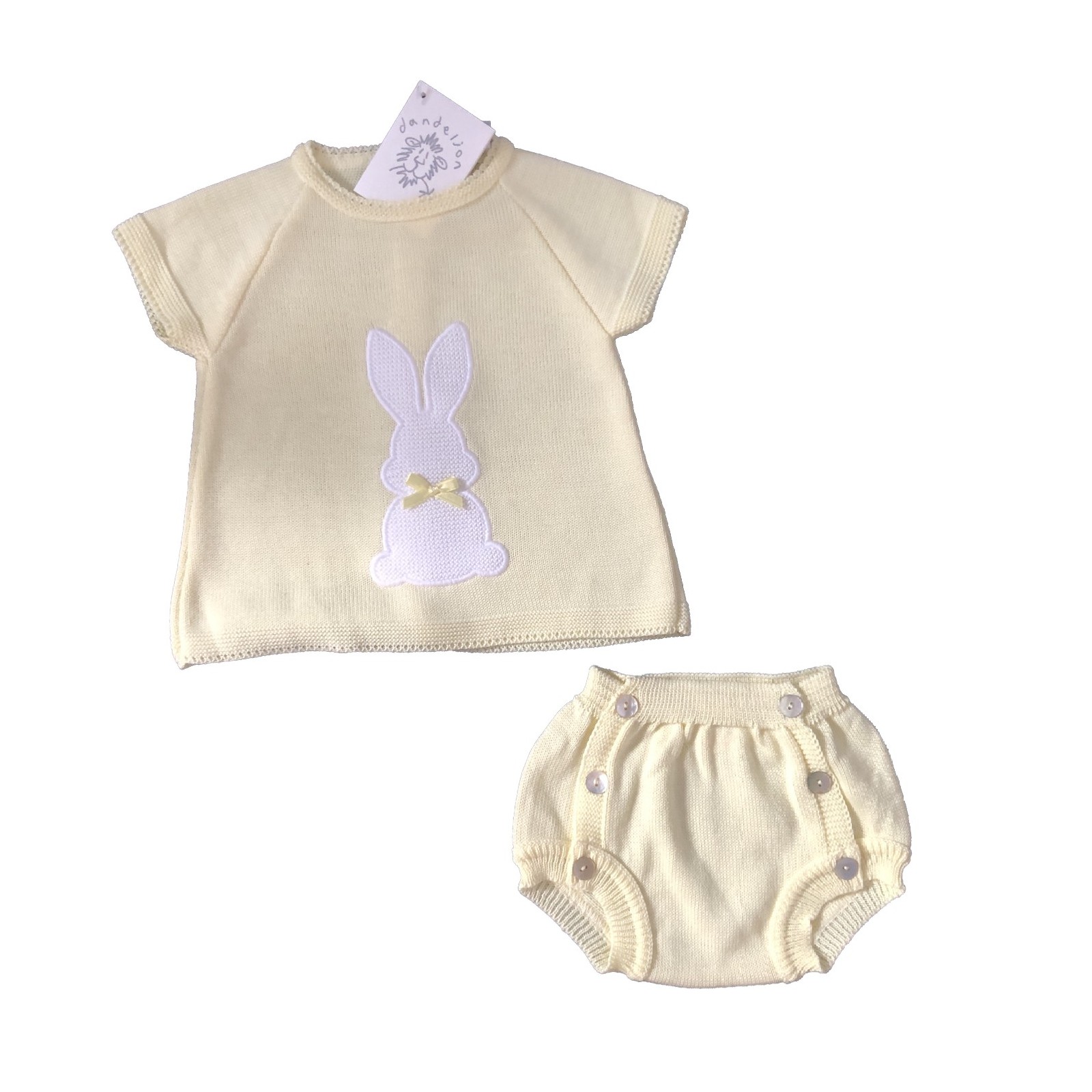 Charming Design: The set features a knitted bunny top paired with matching knickers, all in a lovely lemon colour that adds a cheerful touch to your baby’s wardrobe.