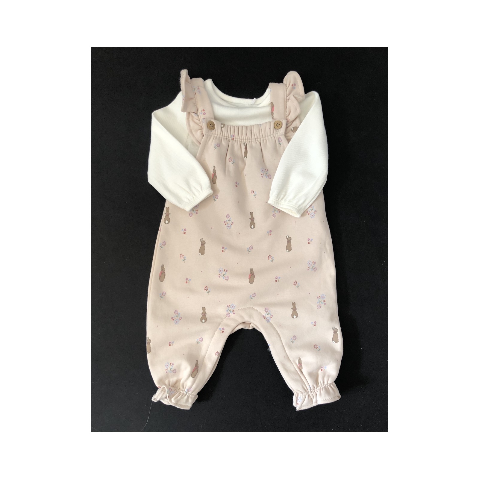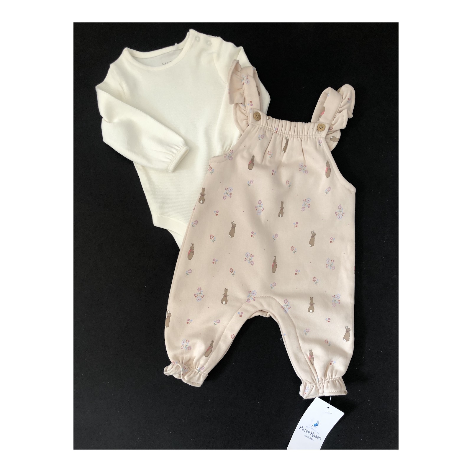 Crafted for comfort and style, this beige Peter Rabbit dungaree set is a delightful addition to your baby girl's wardrobe.