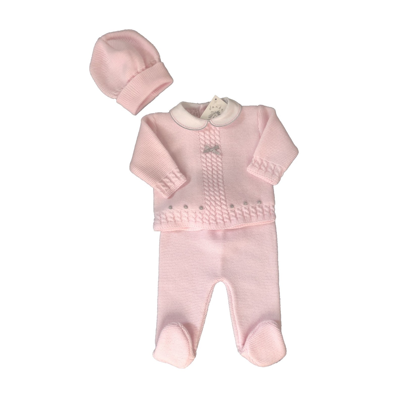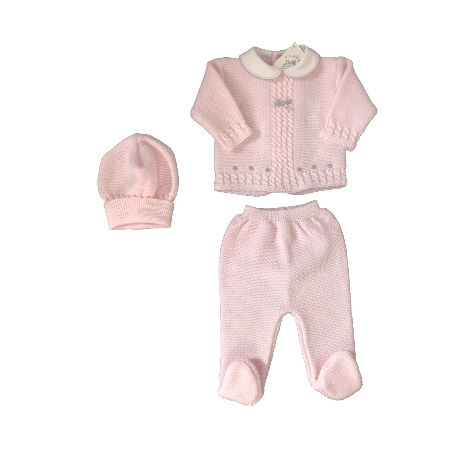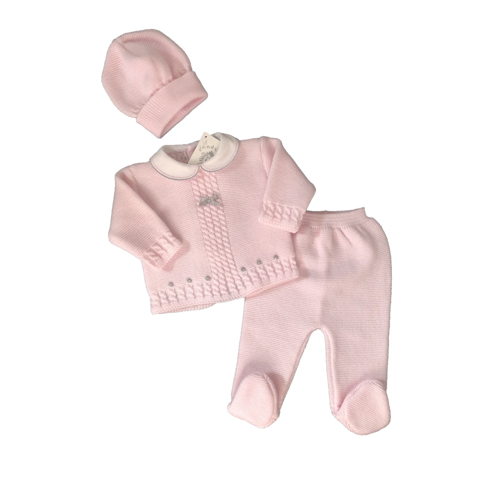 Charming Ensemble: The set includes a pink knitted top, matching trousers, and a coordinating hat, creating a cute and stylish look for your baby girl.